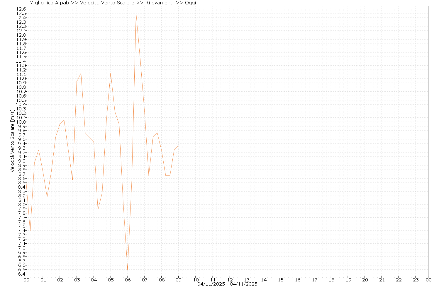 Miglionico Arpab - Velocità Vento Scalare