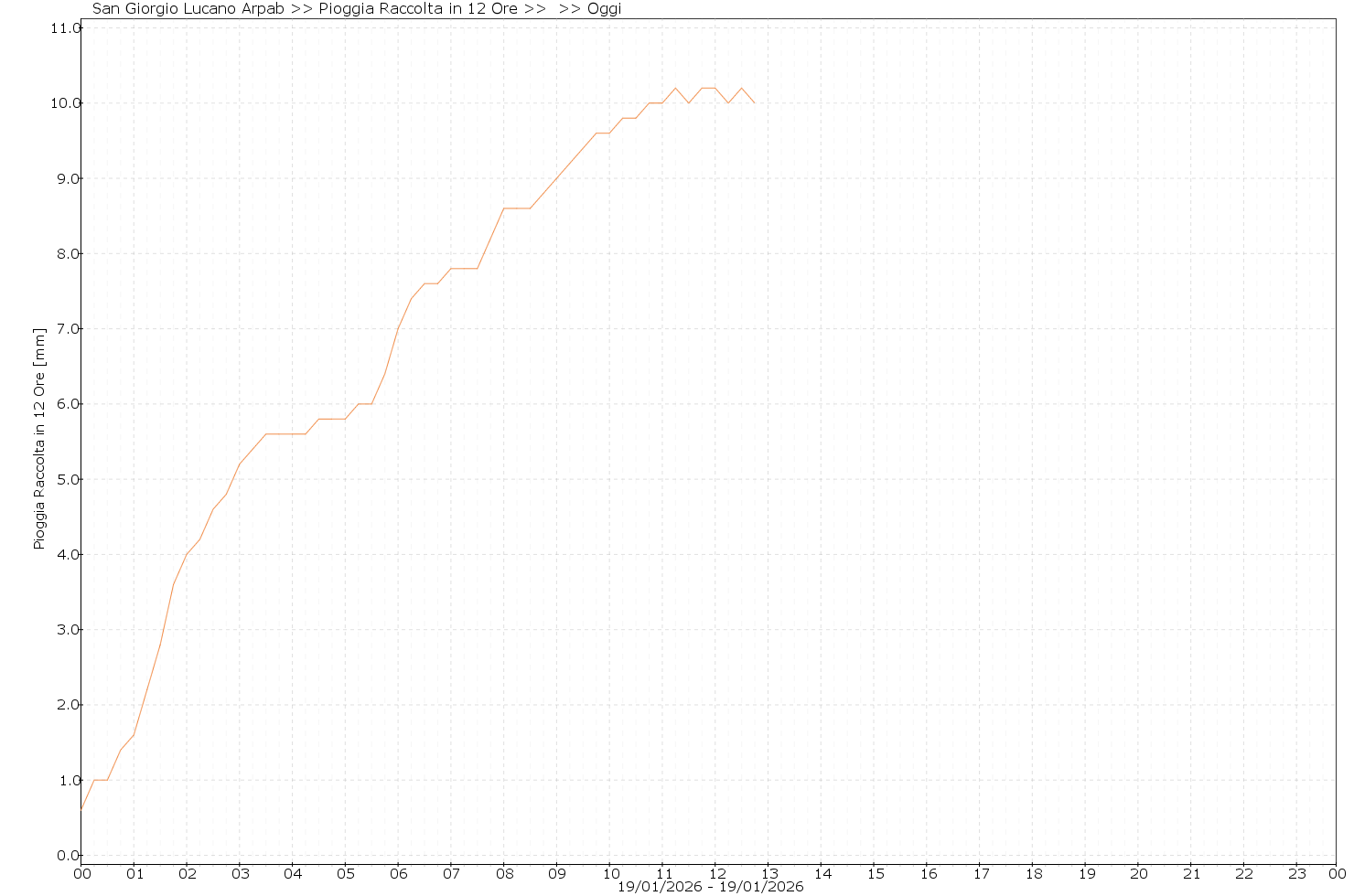 San Giorgio Lucano Arpab - Pioggia Raccolta in 12 Ore
